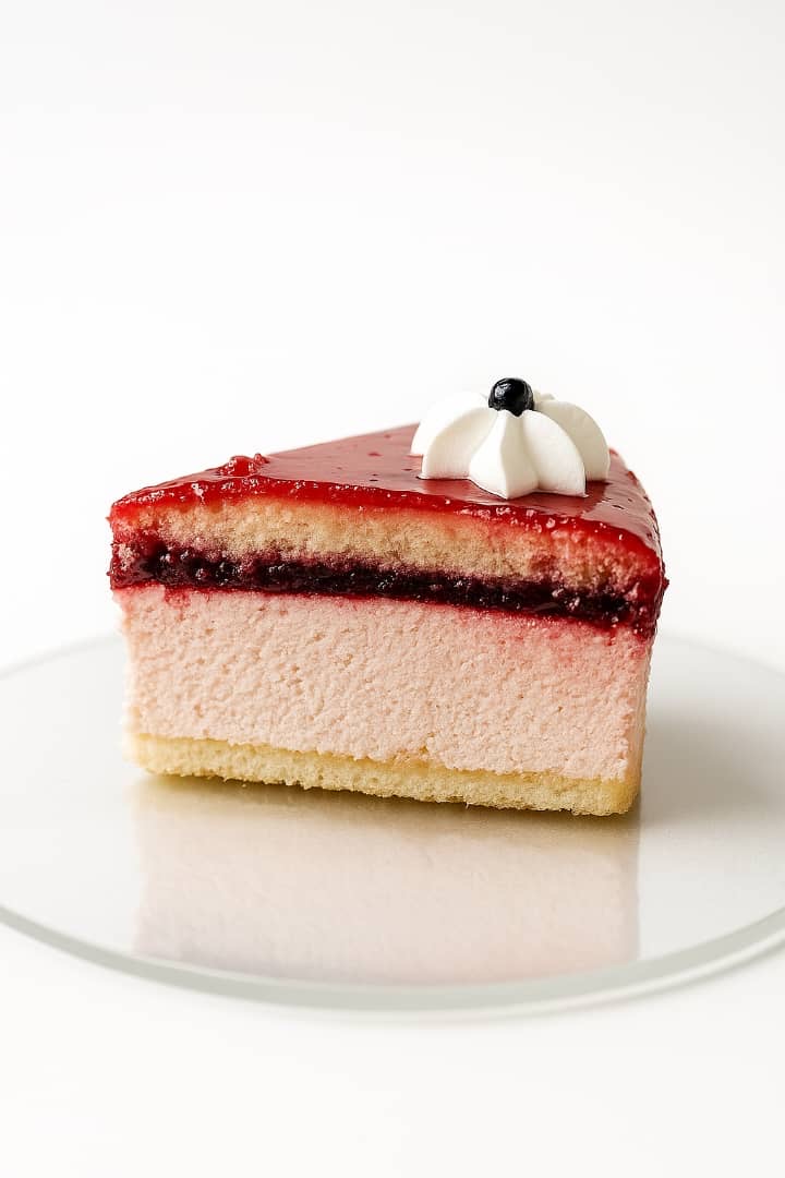 Deliciosa porción de cheesecake con frambuesa para cualquier ocasión.